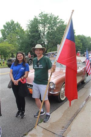 Rotary Club of Webster Groves was joined by District Governor Jerry Nolen, member of Palo Alto University Rotary Justin Wang and former President of Nepal Rotaract Rabina Shakya for the Webster Groves Community Days Parade.